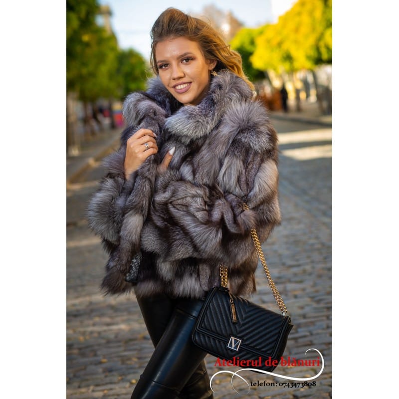 Haină din bucăți de blană naturală de Vulpe Argintie